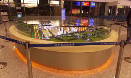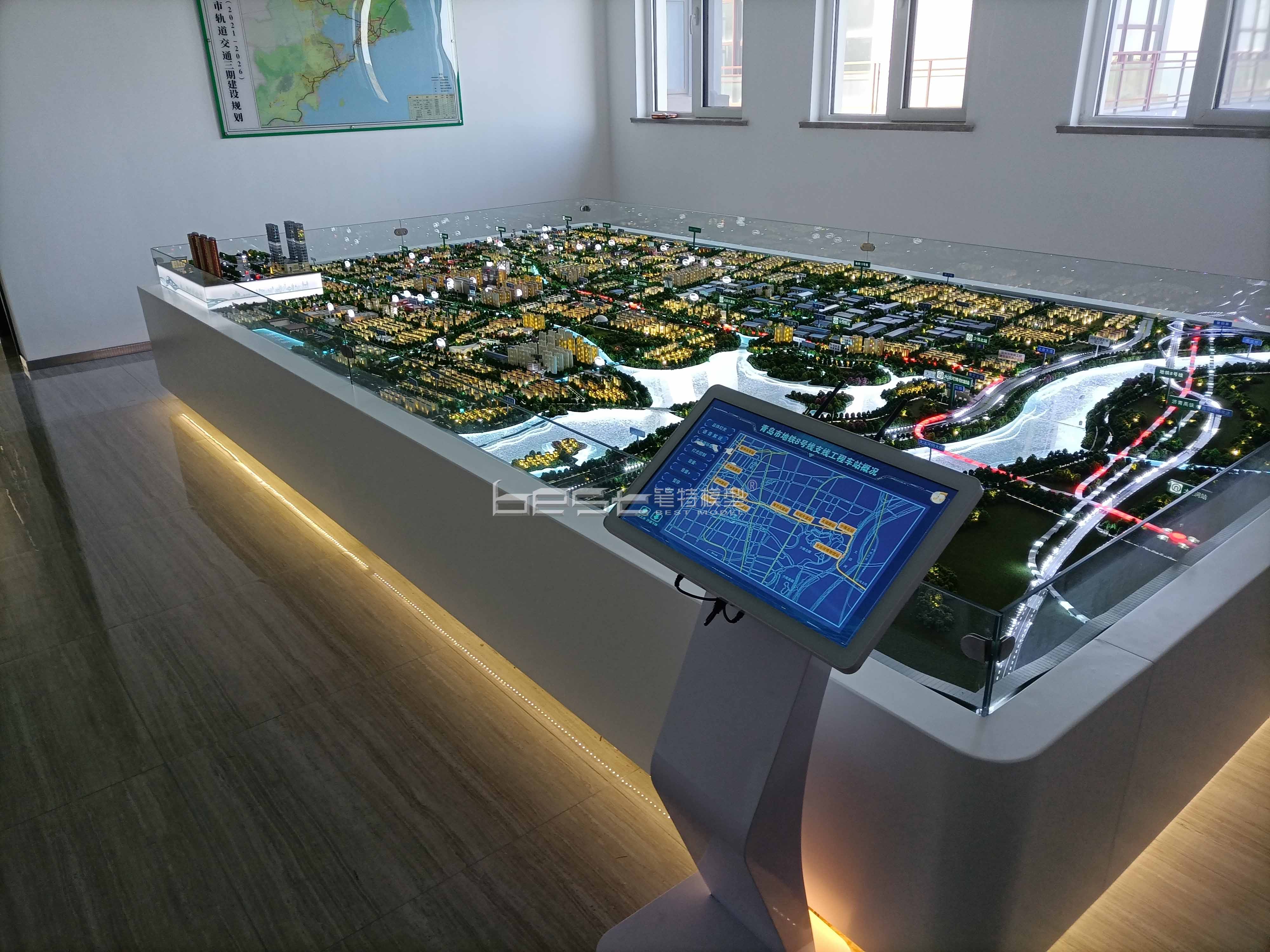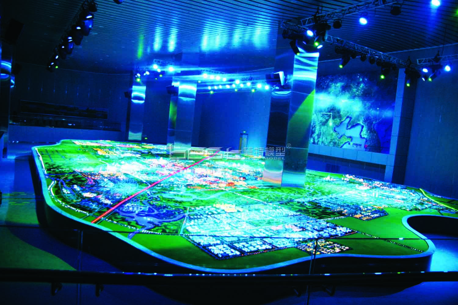 項目名稱:包頭稀土高新區規劃模型比例:1:800模型尺寸:1050*570CM項目簡介:北京模型公司設計的本規劃模型通過多媒體系統控制,背面安裝了LED液晶顯示屏,頂部配有搖頭燈、染色燈,通過